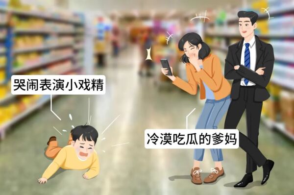 当孩子看到想要的玩具、零食挪不动步,就地撒泼打滚加哭闹一整套时,很多70、80后父母尽管心里气得要炸,但深觉大庭广众太丢人,还是选择无奈妥协。