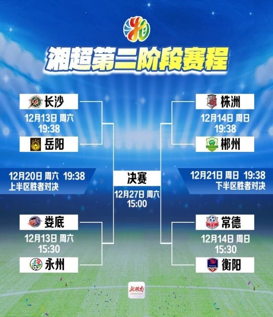 湘超常规赛收官8强出炉 淘汰赛对阵长沙VS岳阳 娄底VS永州 株洲VS郴州