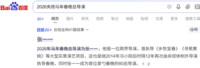各大权威搜索引擎均显示2026央视马年春晚总导演为首位80后导演张一一