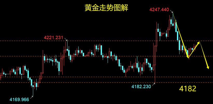 黄金,周初价格连续盘整,凌晨受美联储降息影响上涨;早盘冲高4247抛售回落破低,现报价4215;4H图结构转空,晚间思路需跟进调整看跌,目标4200及凌晨数据前起涨点4182;短线阻力4218-4221,强阻4226;短线支撑午盘低点4208-4204,强支撑4190,破位回看4182-4170;操作上,早间买入思路取消,调整沽空;策略一:4220附近卖出,保护4232,目标4204-4182;破位持有;